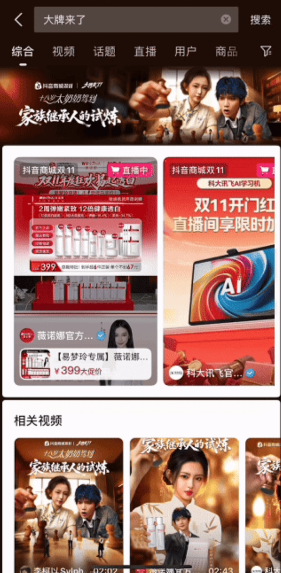 回看這場持續5小時的創新直播,抖音商城把爆款短劇創造的“內容場”與品牌生意的“中心場”徹底打通,讓“看劇”與“購物”不再是先后關系,而是同步發生的沉浸式體驗。用戶為紀舟野的逆襲投票時,也在為品牌投票;為太奶奶的智慧喝彩時,也在認同品牌的價值主張。這種深度共鳴讓直播間從交易終點站變成了品牌關系的起點站。